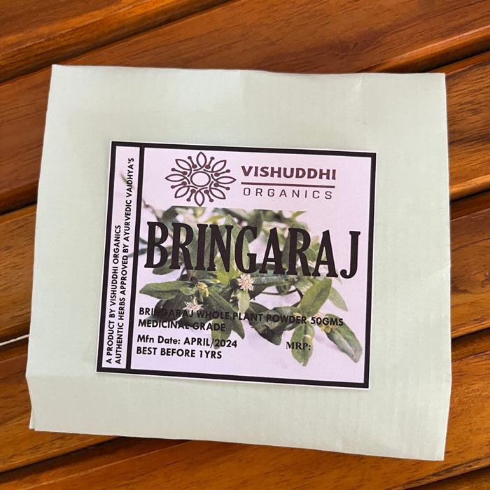Vishuddhi Organic BHRINGRAJ WHOLE PLANT POWDER, meticulously crafted from premium Bel fruits, offering 100% organic goodness. Processed at USDA Organic, India Organic, and ISO Certified facilities, it’s tailored for conscious consumers seeking natural, chemical-free alternatives. Known as the ‘Ruler of the Hair,’ Bhringraj enriches hair health, promoting growth, reducing graying, and nourishing the scalp. Experience the holistic benefits of this Ayurvedic treasure, enhancing hair, nails, bones, teeth, and complexion, while combating harmful radicals with its potent antioxidants.